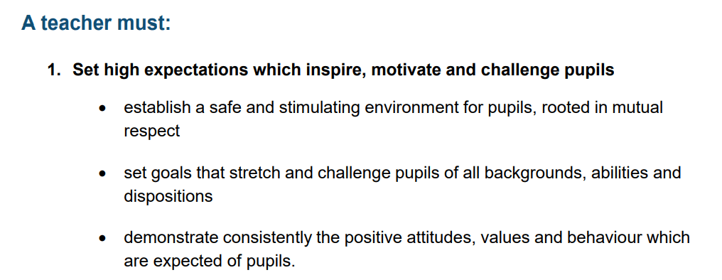 Regular readers of this blog will know that my recent focus has been on concrete actions and drilling down into the specific components of expert practice*. One of those components relates to the way teachers set high or low expectations for their students.